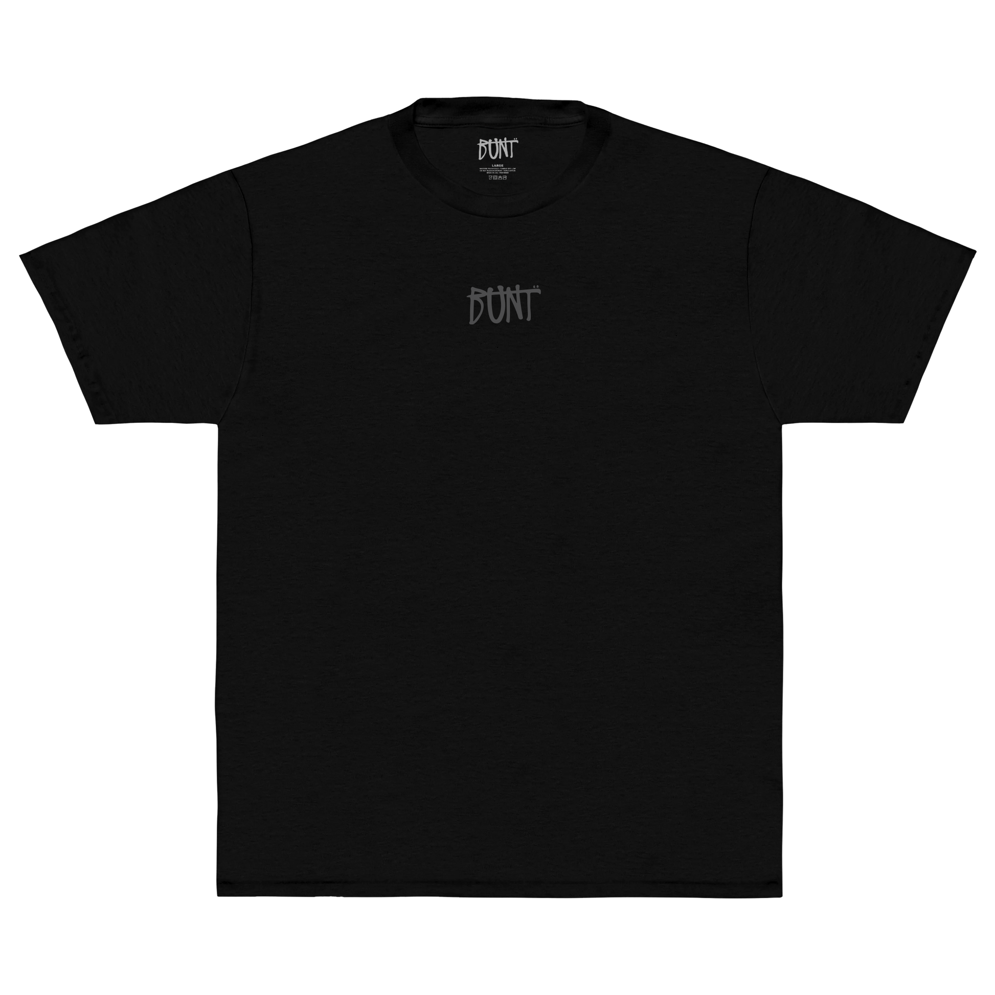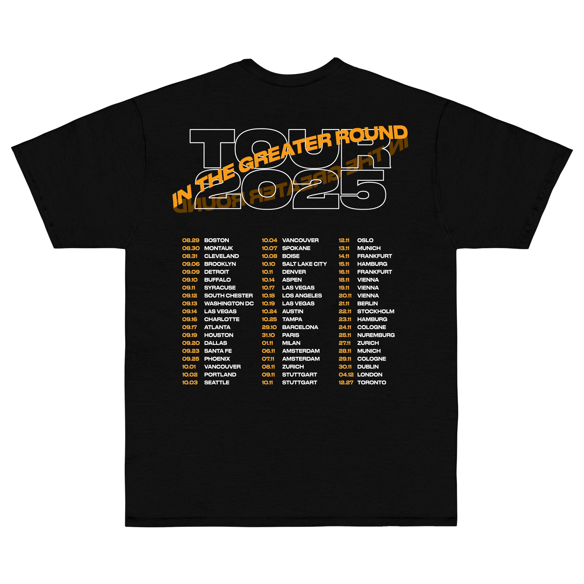 BUNT logo printed on the front and In The Greater Round tour dates printed on the back of a black, unisex tee.